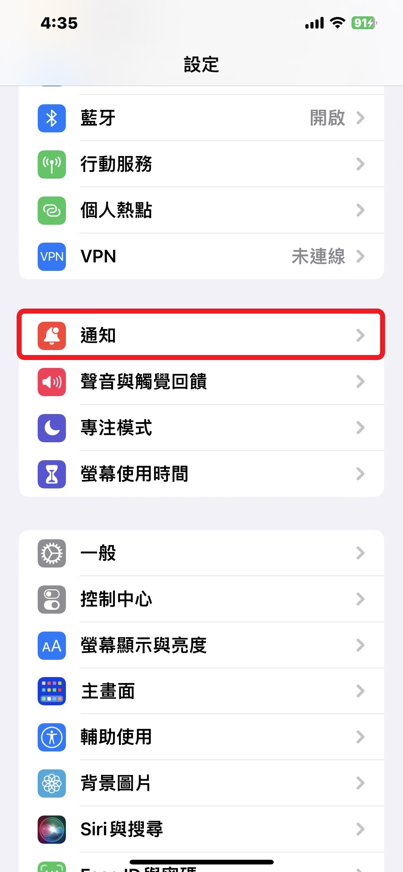 提醒您需要將 iOS 版本升級為 17.0.1 以上,才能開啟「訂閱通知」。